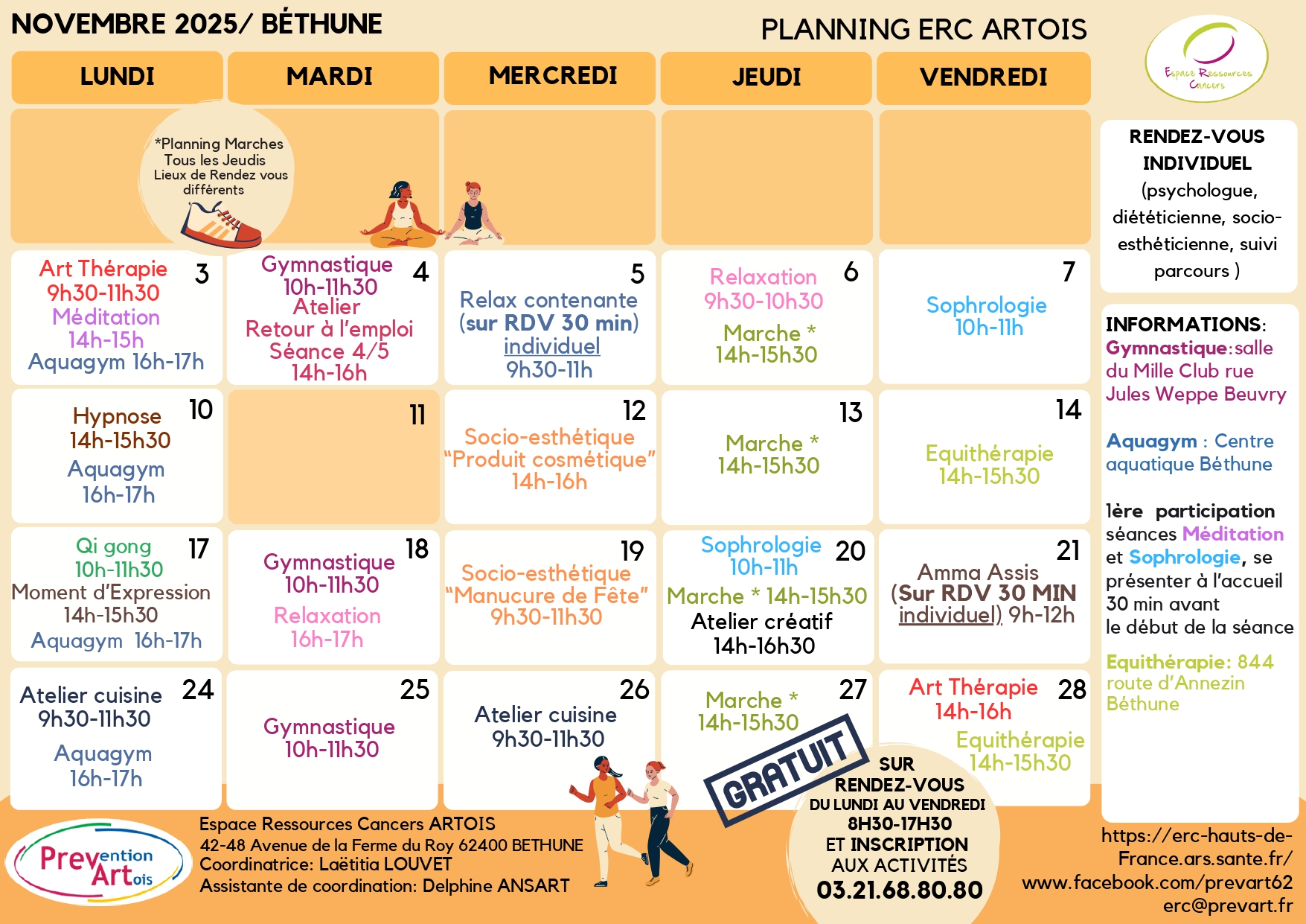 Découvrez le programme de octobre 2025 proposé par Prévention Artois Prevart dans les Espaces Ressources Cancers (ERC) d’Hénin-Beaumont, Béthune et Lens !