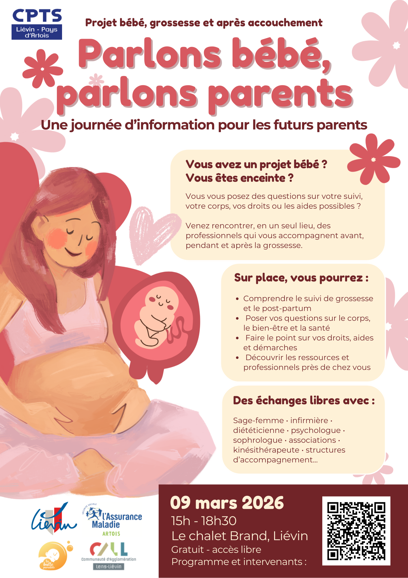 Vous avez un projet bébé ou êtes enceint.e ? Venez rencontrer les professionnels et acteurs du territoire lors d’une journée gratuite d’information autour de la grossesse, du bien-être et des droits, le 9 mars à Liévin.