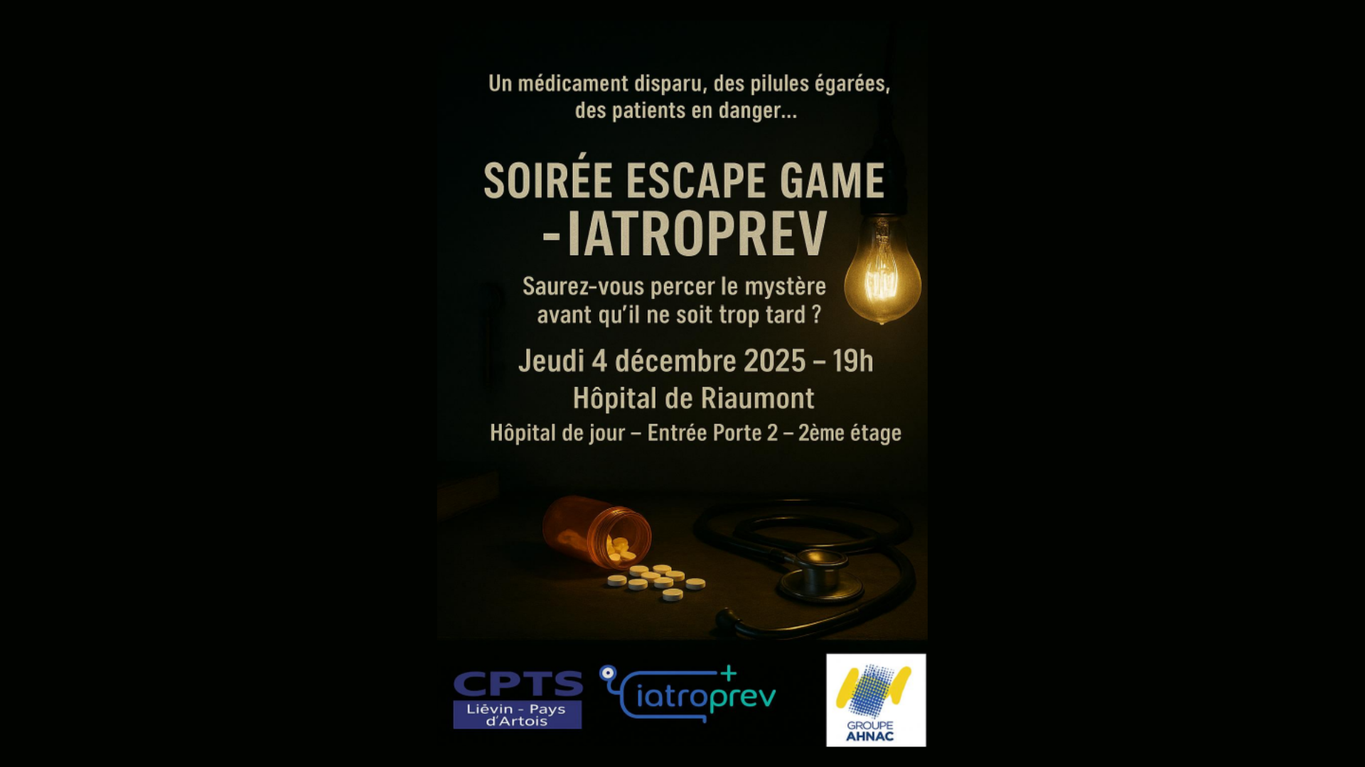 Plongez au cœur d’un scénario immersif autour de l’iatrogénie médicamenteuse !La CPTS Liévin – Pays d’Artois et l’Hôpital de Riaumont (groupe AHNAC) vous invitent à une nouvelle édition de leur soirée Escape Game interprofessionnelle : un moment ludique, enrichissant et convivial réunissant médecins et professionnels de santé du territoire. En équipes mixtes ville–hôpital, vous devrez […]